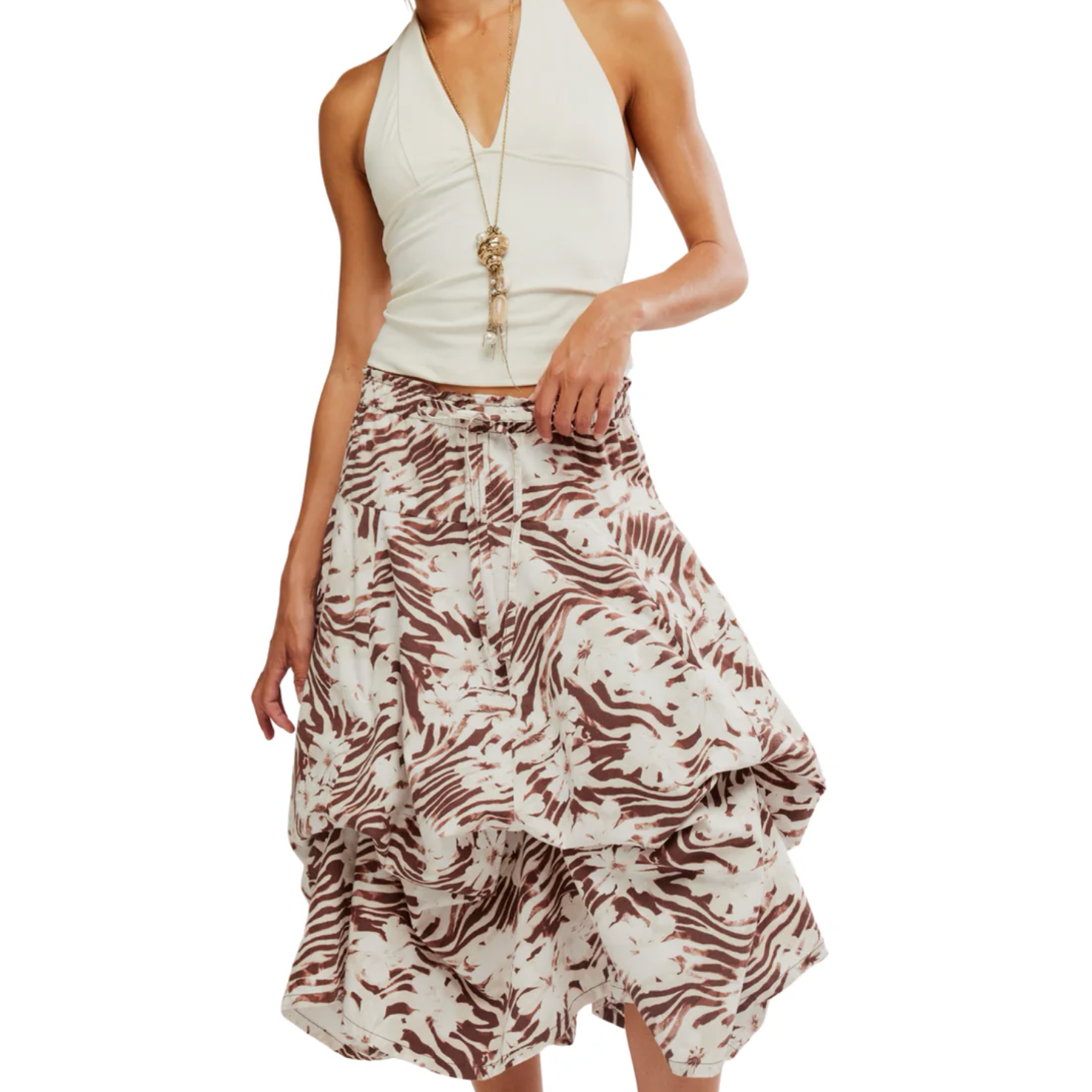 The Zephyr Bustle Convertible Skirt in Chocolate by Free Peopleis a versatile statement piece designed for effortless spring clothing styling. Featuring a flowing silhouette with a unique convertible skirt design, this Free People skirt transitions seamlessly from casual daytime looks to elevated ensembles. Rich in color and movement, it’s the perfect choice for modern, feminine spring style.