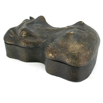 Hippo Box. Protect valuables inside the mighty hippopotamus. This decorative box measures 10x6x5" H.